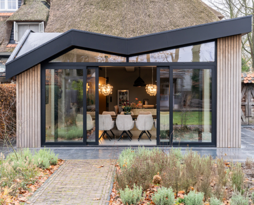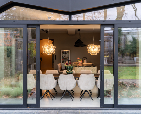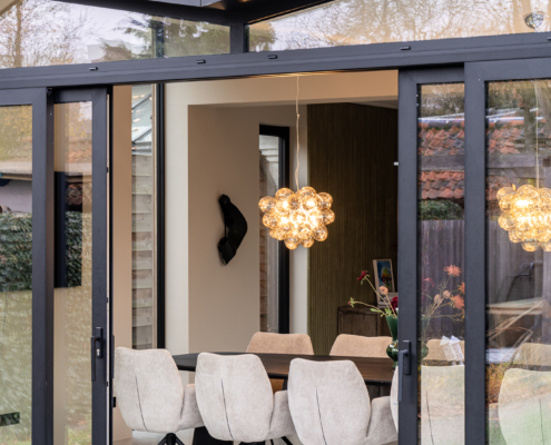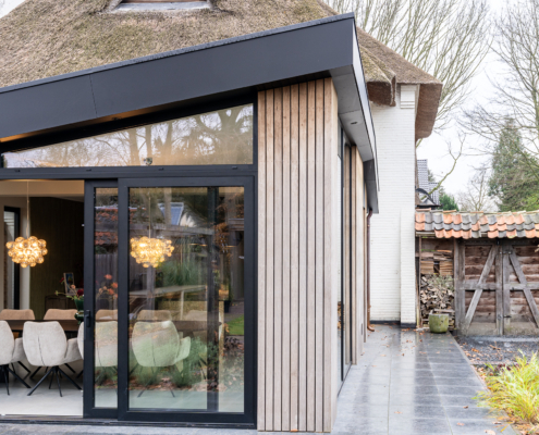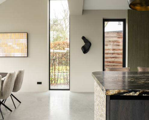 Voor deze vrijstaande woning hebben wij een aanbouw mogen ontwerpen. Ook het interieur van de begane grond is door ons ontworpen.